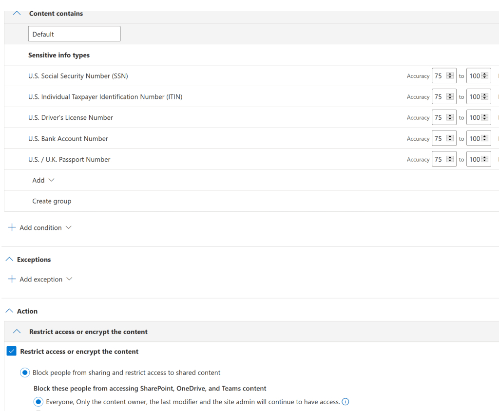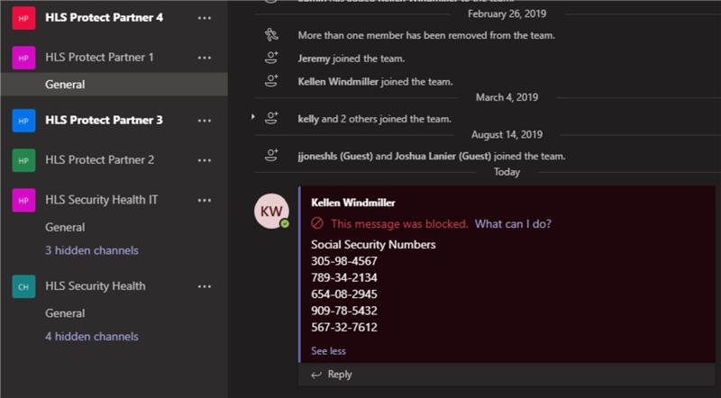 However, what if your organization has company policy or regulation requirement(s) that prohibit the posting/sharing of “sensitive information” in online tools. This can be a challenging requirement to meet for online collaboration tools but fortunately Microsoft 365 security tools allow organizations the flexibility to implement the needed control policies. Provided below are examples of different tools and policies that can be implemented to protect sensitive data from being posted in Microsoft Teams.