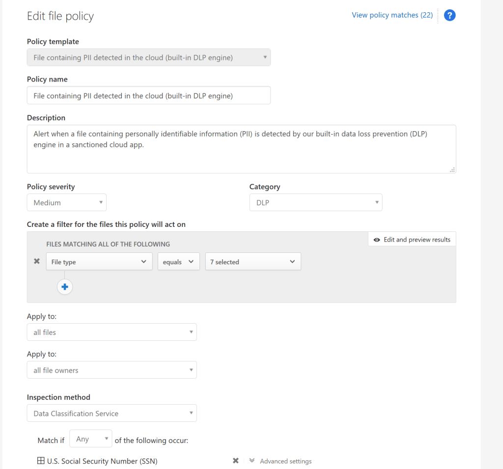 More information on MCAS File Policies can be found here.